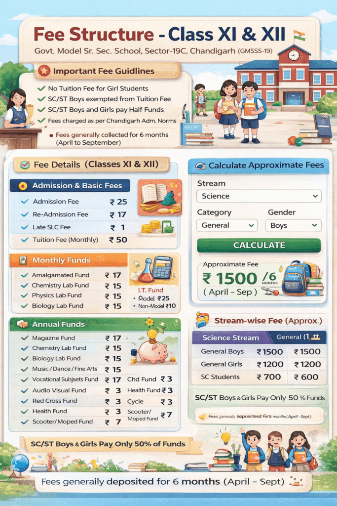 At GMSSS-19C Chandigarh, we believe that financial constraints should never be a barrier to education. Our fee structure reflects our commitment to providing accessible, inclusive, and high-quality education for every student.